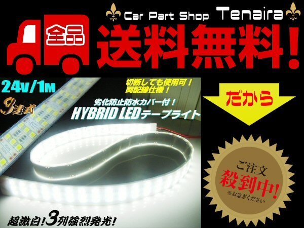 - 24V トラック 船舶 漁船用 爆光3列 (180連球) 基盤 カバー付 LED テープライト 蛍光灯 航海灯 1M巻 メール便送料無料/2