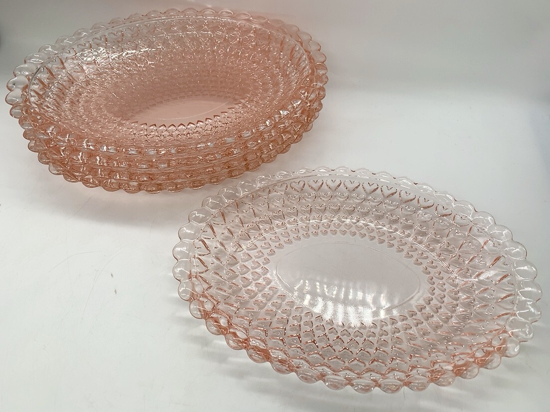 - 中古 東洋ガラス シャンゼリゼハートオーバルプレート 5枚セット まとめて ピンク 楕円 お皿 昭和 レトロ コレクション 0803や13 A1 80