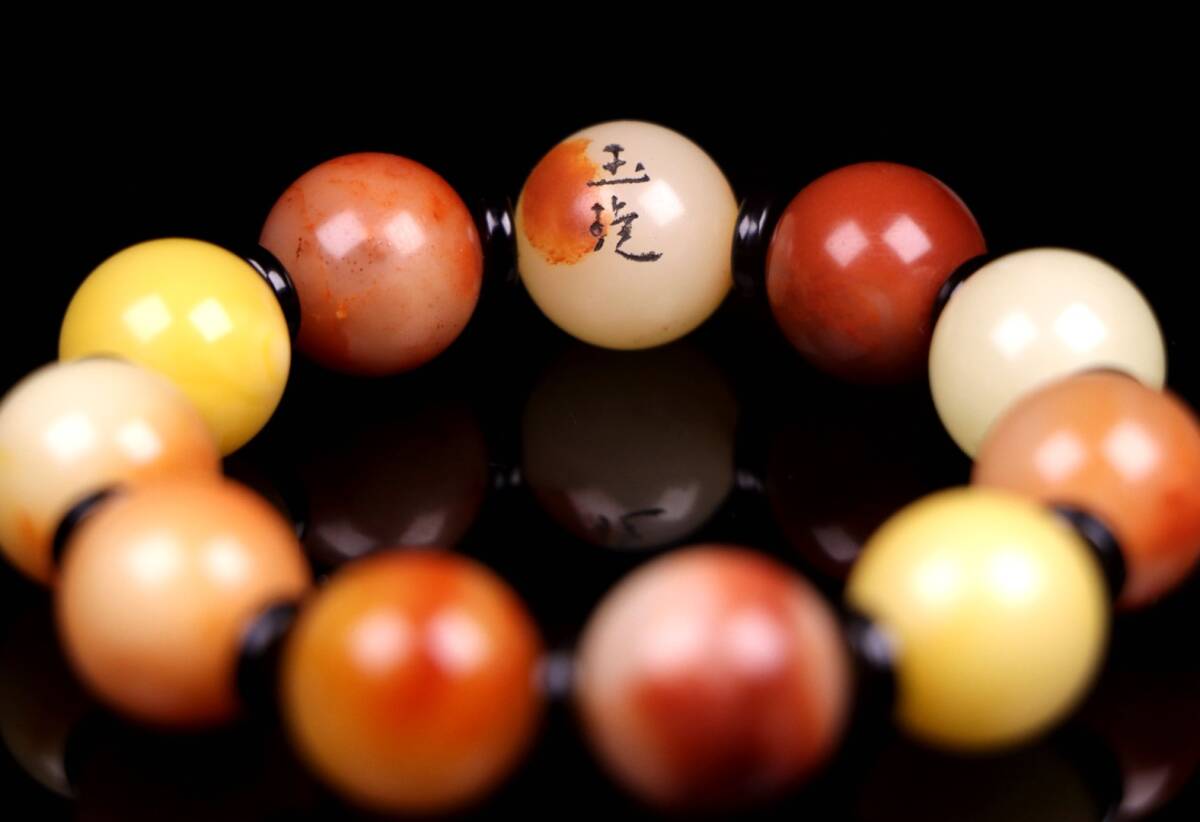 - 唐物 【清代篆刻家 楊玉旋】寿山石 多彩芙蓉石 手串 天然石 手彫 篆刻 極細工 中国古玩 骨董品 古美味 D68
