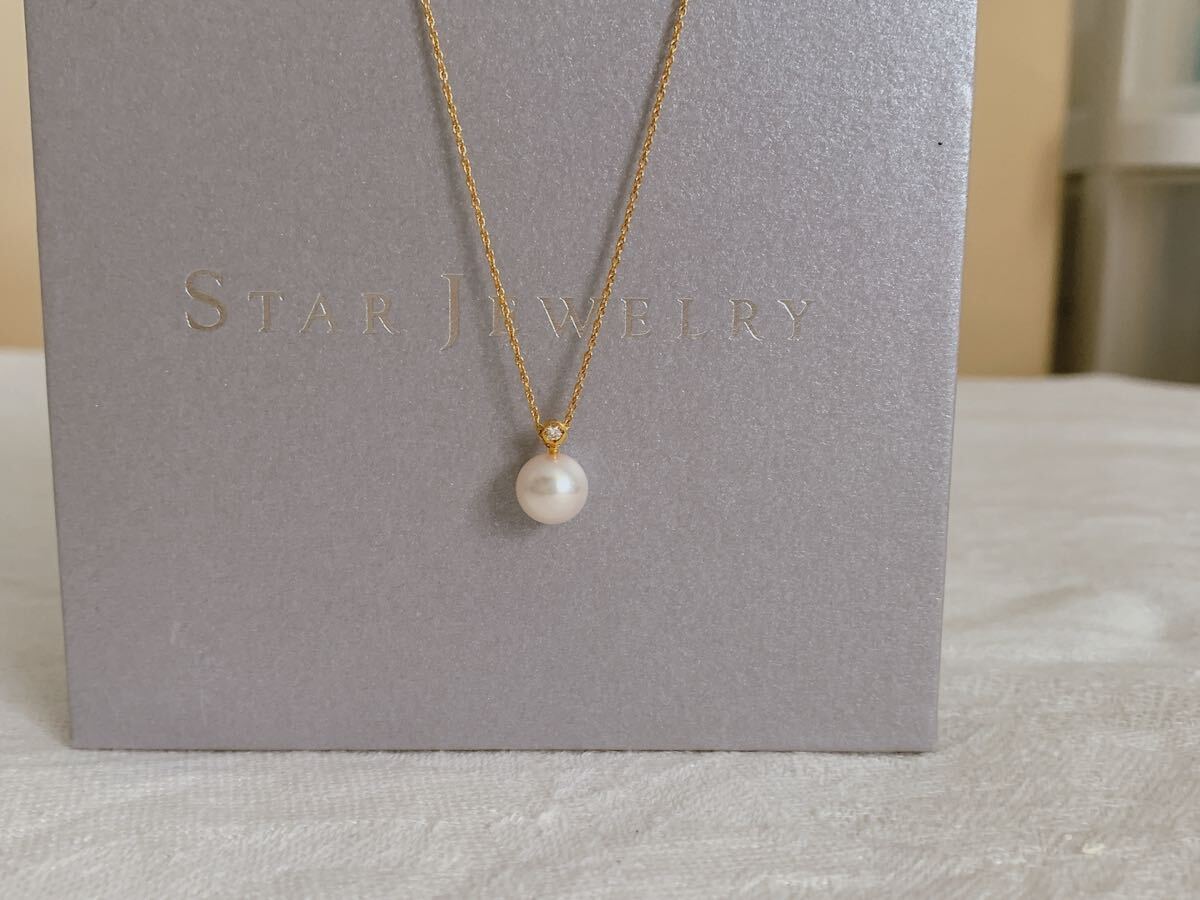 - スタージュエリー K18 パール ダイヤ ネックレス 7.8mm珠 STAR JEWELRY