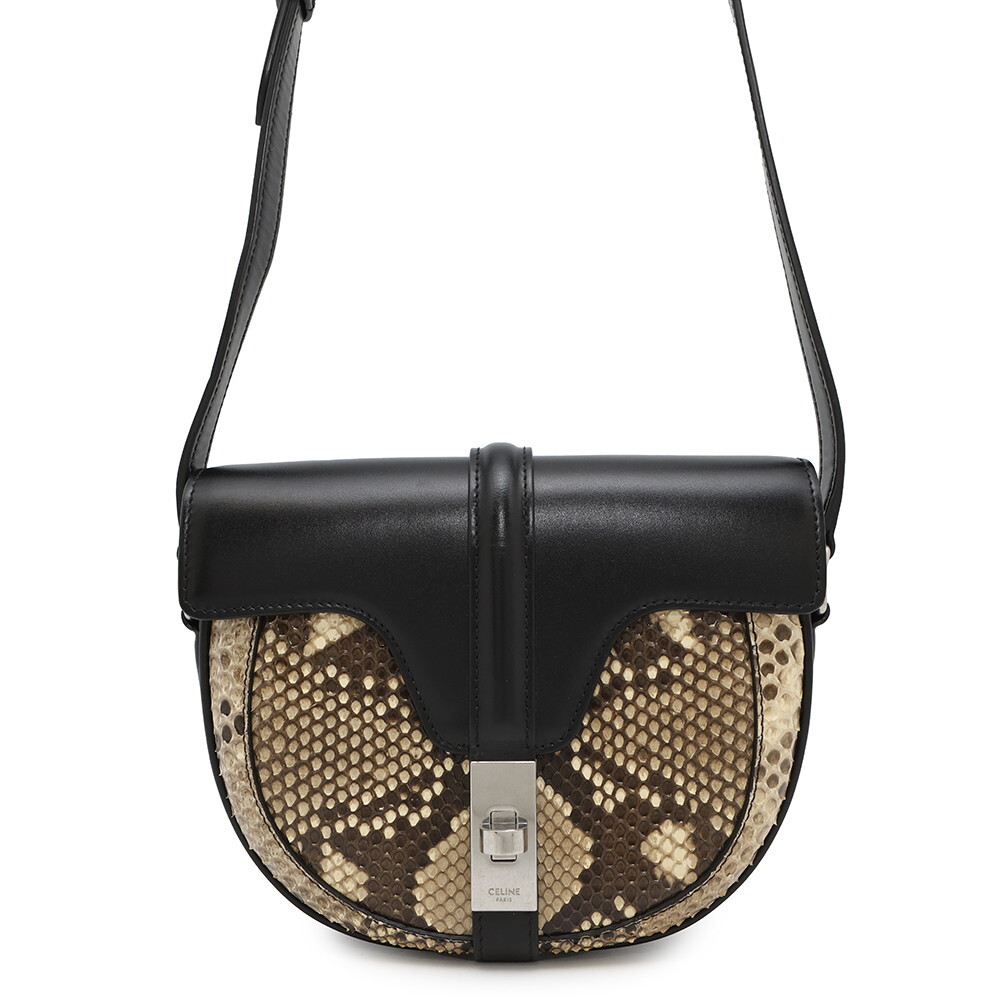 > セリーヌ ショルダーバッグ ブザス 16 セーズ スモール パイソン レザー CELINE 黒 【安心保証】