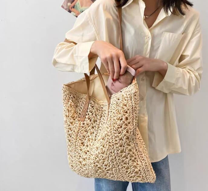 - 大人気大容量かごバッグ レディース トートバッグ 手提げ ストローバッグ ハンドバッグ