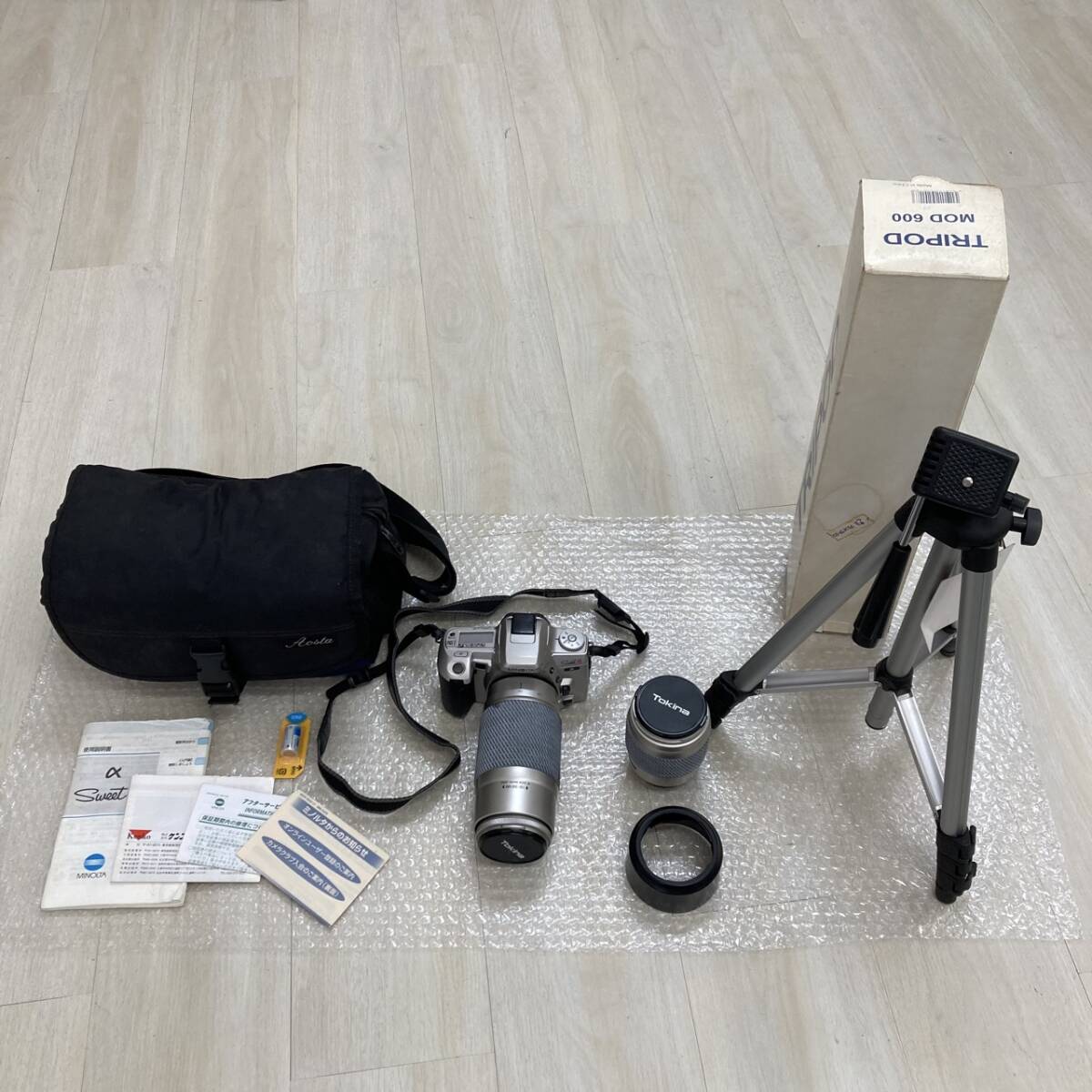 > tk1675 ミノルタ MINOLTA α 100-300mm 28-80mm フィルムカメラ レンズ2本セット 動作未確認 脚立付き 説明書 電池 ケースあり 中古