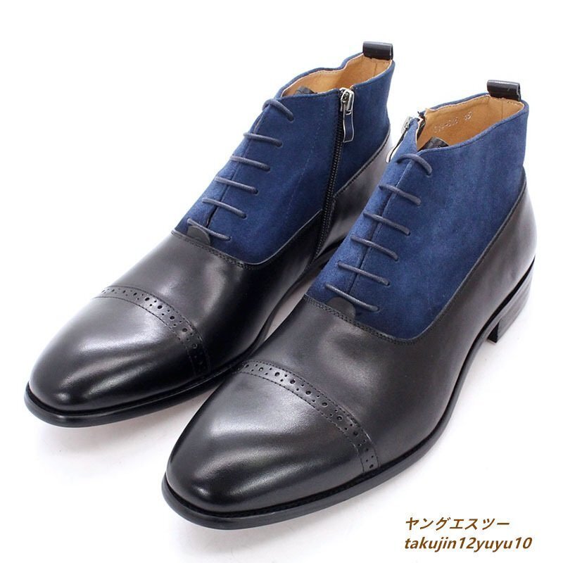 > 最高級★マーティンブーツ 配色 ショートブーツ 切替 エンジニアブーツ 牛革 レザーシューズ 本革 ビジネスシューズ 職人手作り 黒 25.0cm