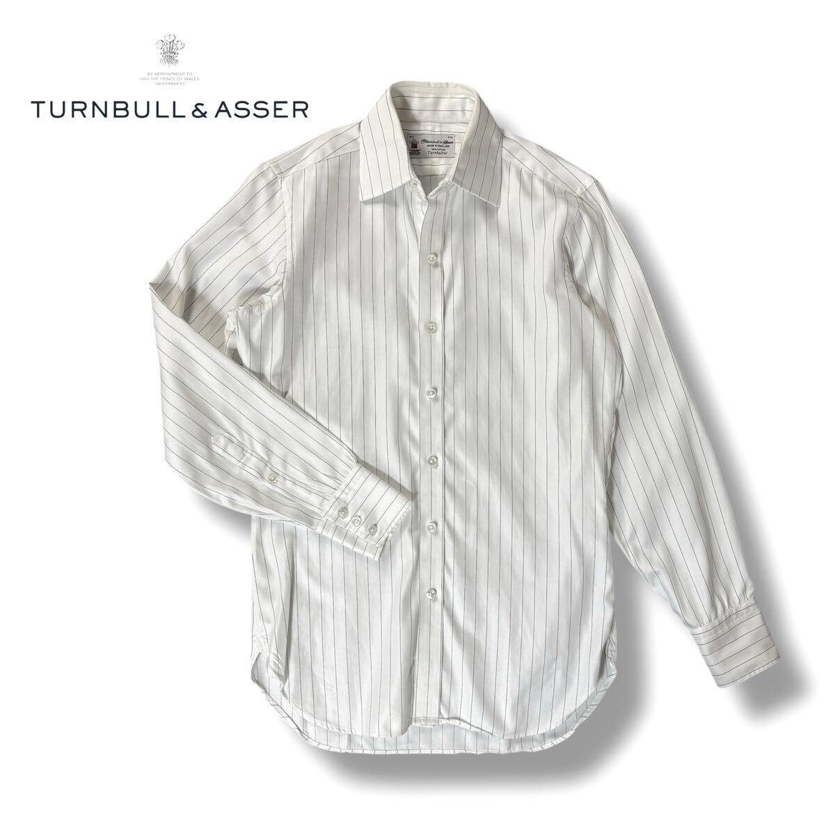> TURNBULL & ASSER ターンブル & アッサー コットン セミワイドカラー 長袖 シャツ ホワイト ストライプ 141/2 37cm 英国製