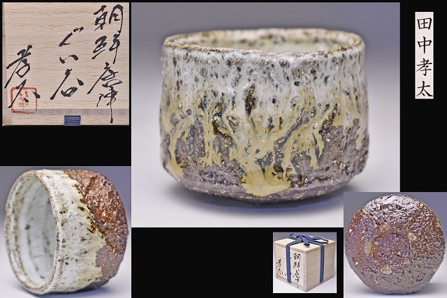 > 田中孝太 ★ 朝鮮唐津 ぐい呑 ★ 共箱 栞 ★ 師: 中川自然坊 ★ 野趣溢れる景色が素晴らしい ★ 酒器 杯 盃 ★