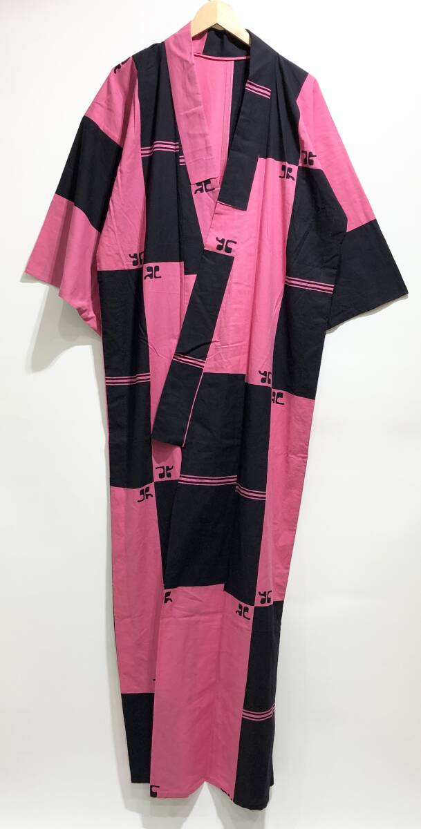 > courreges paris 浴衣 着物 ロゴ クレイジーパターン 総柄 綿100% ピンク ブラック D-KT6059 クレージュ さんび 和装 和服■0812H
