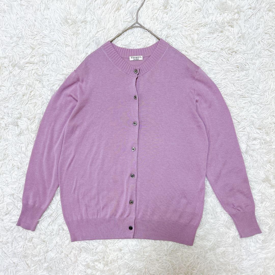 > VERMEIL par iena ヴェルメイユパーイエナ コットンシルクカーディガン パープル 紫 ニット 羽織り 薄手 オフィスカジュアル 春秋