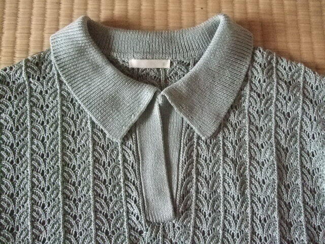 > GU レース模様編み半袖カットソー/セーター夏 淡いグリーン系/若草色 S