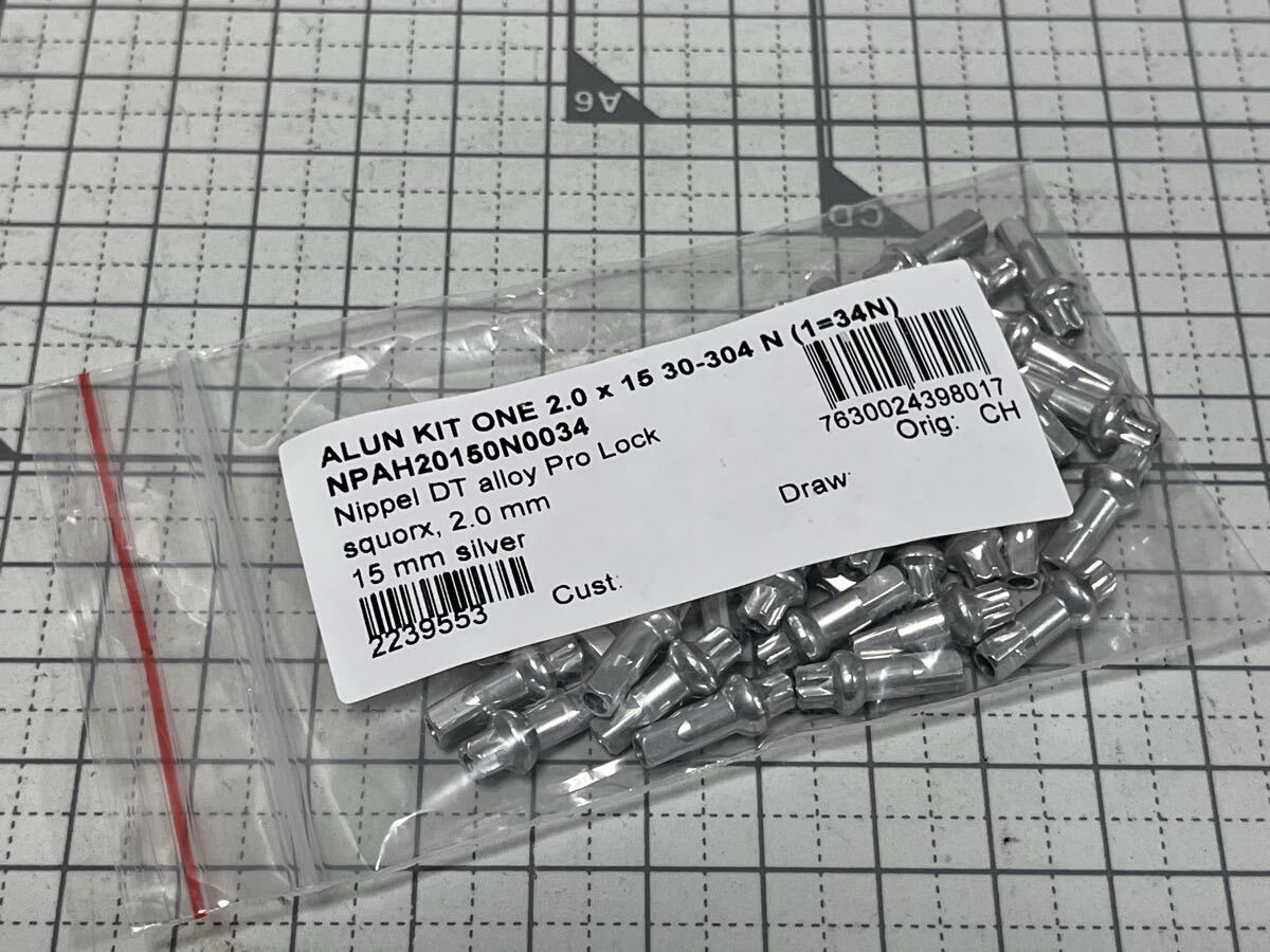 - DT SWISS Spoke Nipple Squorx Pro Lock Aluminium 2,0 x 15 mm | silver | 34 Pcs