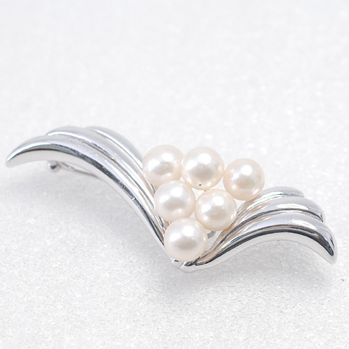- 田崎真珠 SILVER 6Pパール ブローチ/シルバーノンポリッシュ品(16543)
