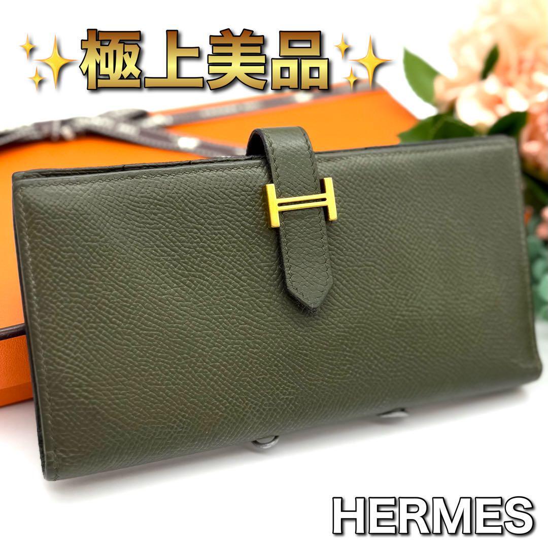 - 極上美品! HERMES エルメス ベアンスフレ カーキ 緑 二つ折り財布 長財布 レディース M68