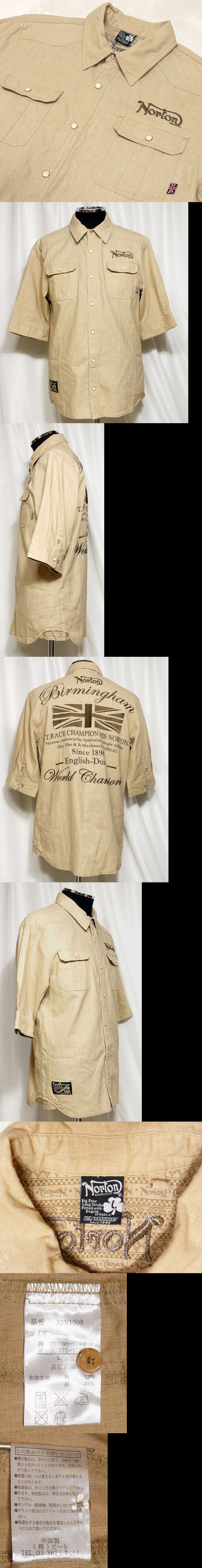 > ☆美品 Norton ノートン 麻混(麻52%綿48%)メンズ 半袖ウエスタンシャツ バイカー 刺繍 ベージュ L(身長175~185)