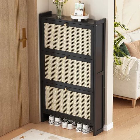 - 超薄型の靴の箱家庭用戸口の無垢材の木がひっくり返して壁に寄りかかって靴の棚の新型の極めて狭い収納の神器の扉の後の収納の箱