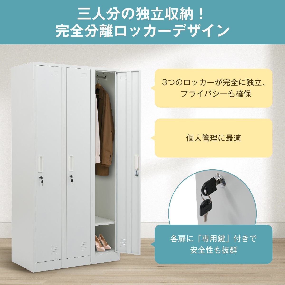 - ロッカー スチール製 鍵付き 3人用 収納 オフィス 事務所 会社 店舗 病院 学校 更衣室 業務用 3列 ホワイト