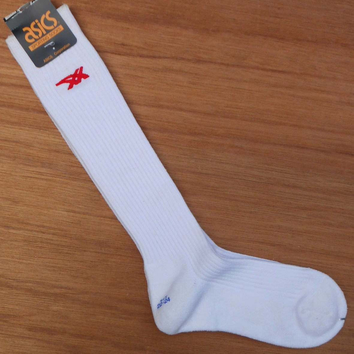 - 未使用 '80s asics SPORTING SOCKS バレーボール ハイソックス アシックス 22cm~24cm 白x赤 バッタ刺繍 ヴィンテージ 23cm デッドストック