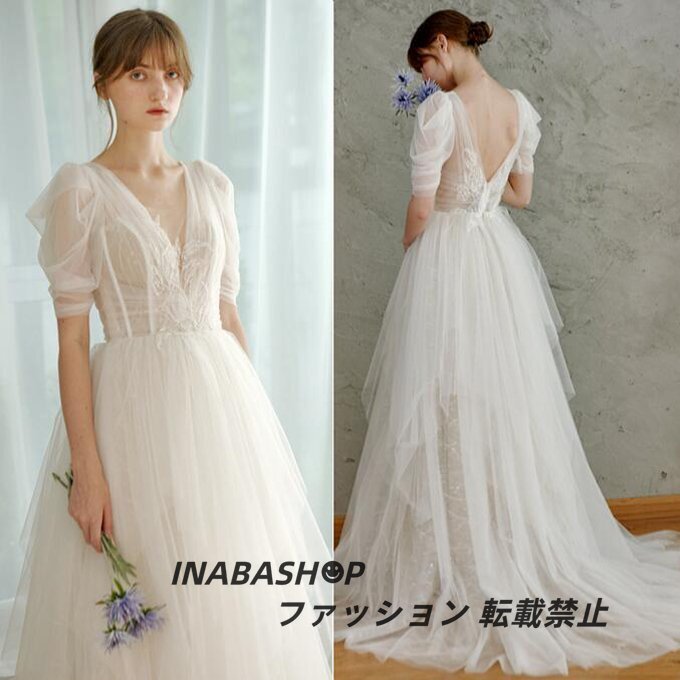 - ウエディングドレス ウェディングドレス トレーンタイプ ファスナータイプ 花嫁ドレス 二次会 ドレス 花嫁 白 披露宴 結婚式海外挙式ドレス