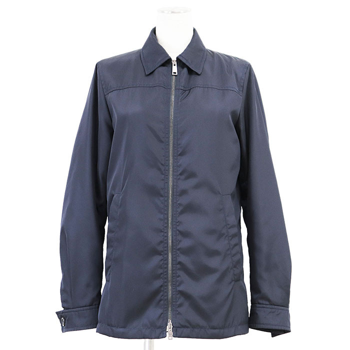 - PRADA プラダ ブルゾン 中綿 ナイロン リモンタ社 2019年製 ロゴ ジップアップ サイドスリット ジャケット レディース 38 紺 ルーマニア製
