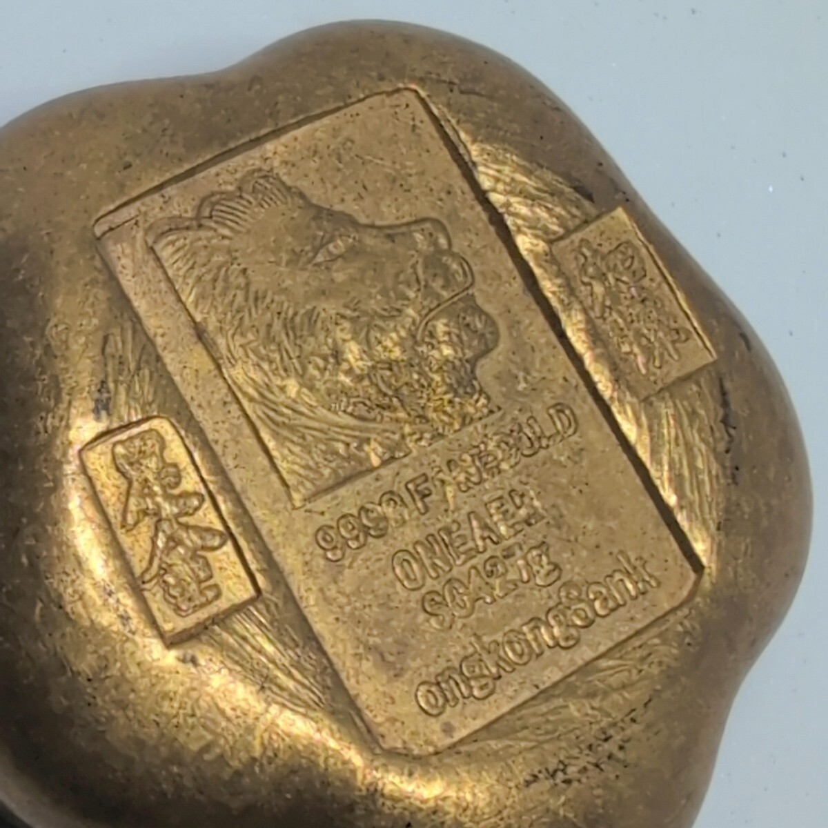 - 金貨 古銭 中国 清時 「加煉 足金」銘 金塊 梅型 獅子 硬貨 コレクション