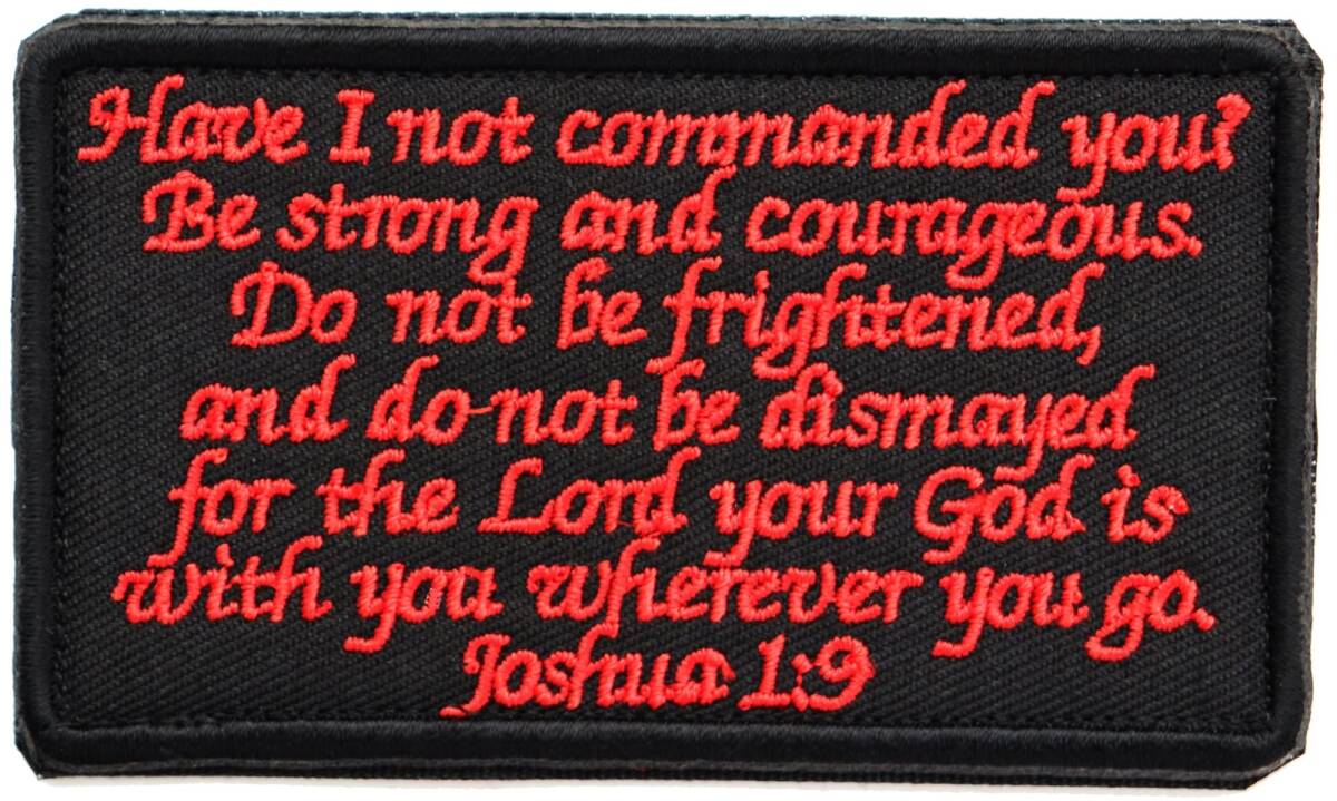 - ワッペン 旧約聖書 ヨシュア記 1章9節 マジックテープ(ベルクロ・面ファスナー)着脱式 ミリタリー サバゲー 名言の刺繍パッチ