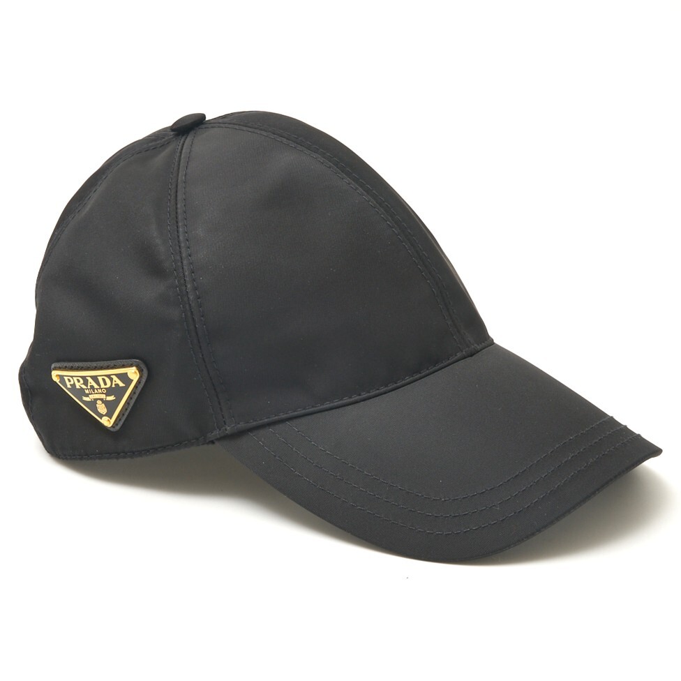 - PRADA プラダ Re-Nylon ベースボールキャップ 1HC274 2DMI 帽子 ナイロン×コットン ブラック×ゴールド メンズ レディース ユニセックス