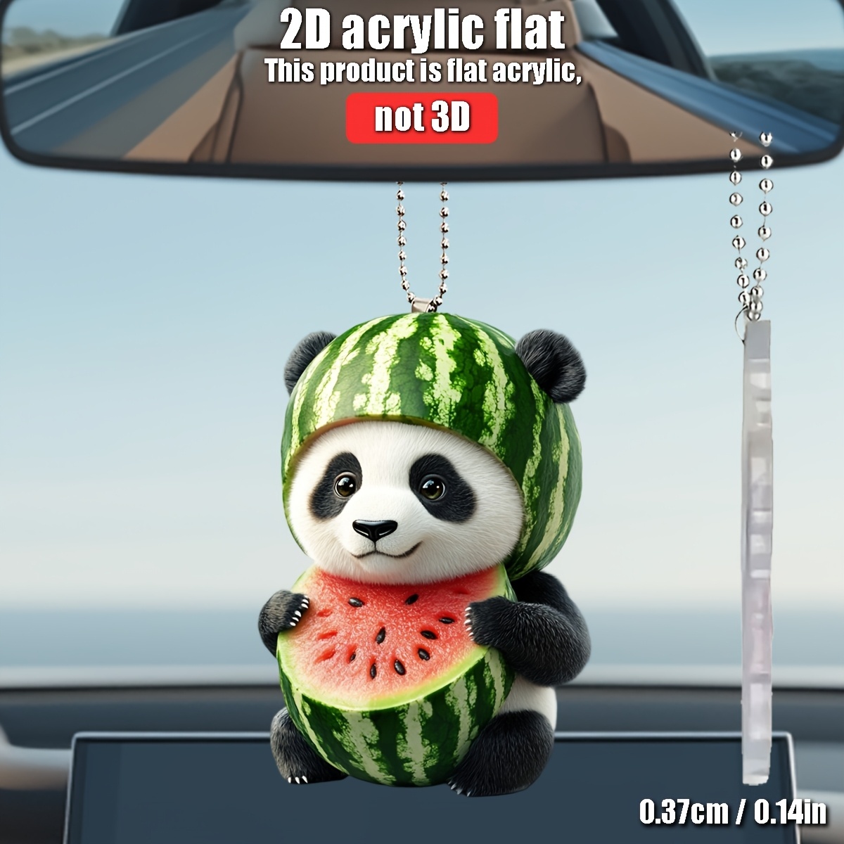 - キーホルダー スイカ パンダ アクリル 平面 2D 動物 アクリル 8cm 吊り下げ かわいい おもしろ アニマル 車 バックミラー インテリア t7947