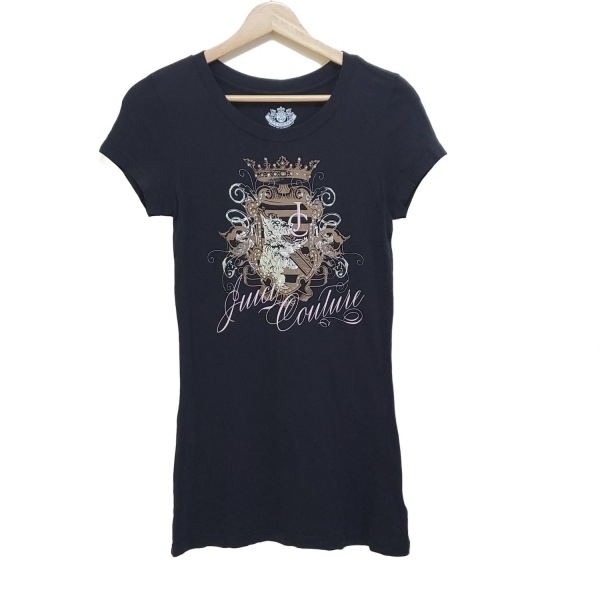 > ジューシークチュール JUICY COUTURE 半袖Tシャツ サイズS - 黒×シルバー×マルチ レディース クルーネック/ラインストーン トップス