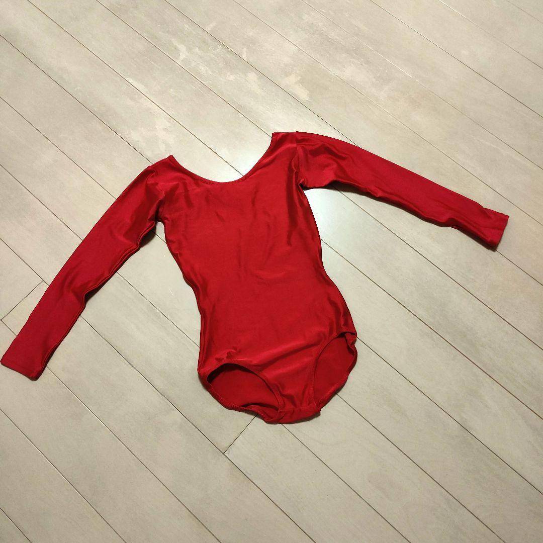 - レオタード チャコット レッド色 ラウンドネック 小さめM寸相当 七分袖