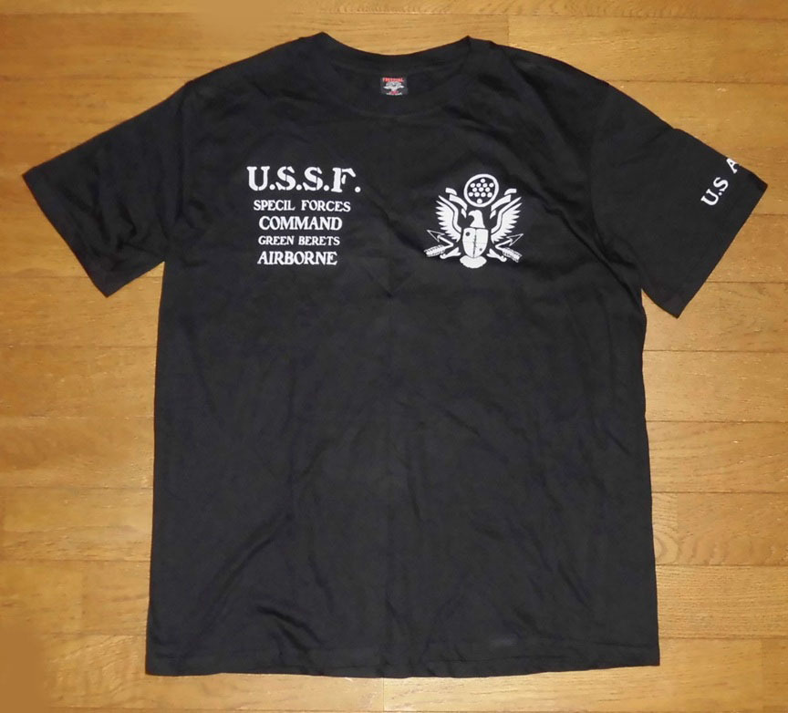 > U.S.S.F. SPECIAL FORCE アメリカ宇宙軍 コマンド Tシャツ 半袖 コットン BLK LL 使用少 美品/米軍U.S ARMYアメリカ軍グリーンベレー