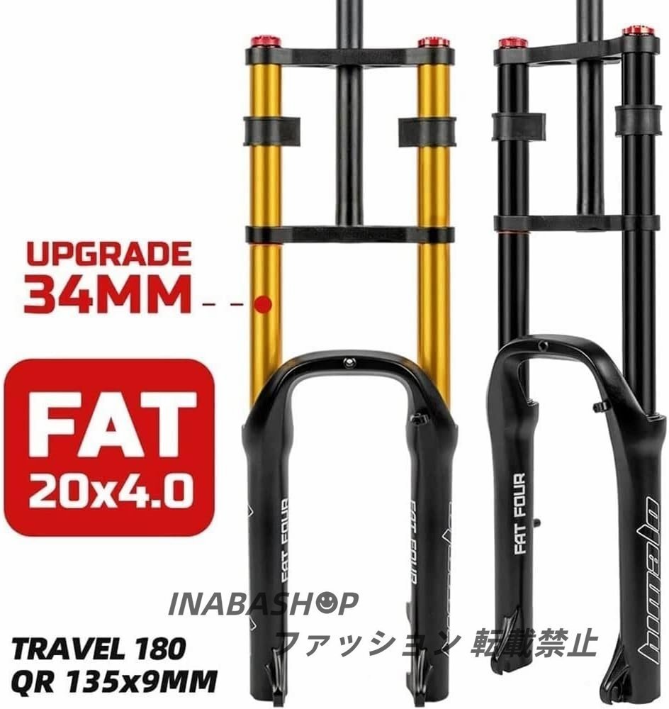 > 20インチの自転車 エアファットフォーク 雪 MTB サスペンションフォーク トラベル 130MM フィット 4.0 タイヤ エアフロントフォーク