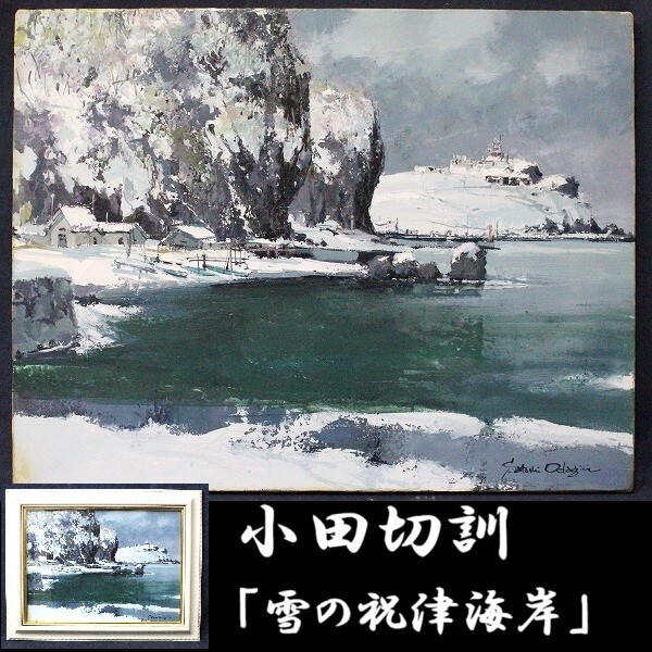 > 【真作】 小田切訓 「雪の祝津海岸」 油彩10号 全盛期の抜群色彩・鮮烈な線描美 北海道風景逸品! E21