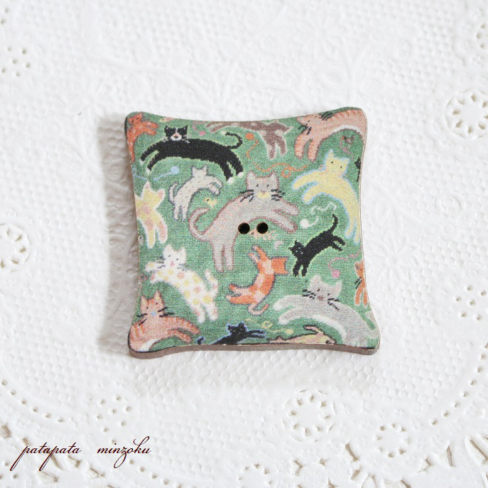 > ジョリーレッド・クッション フランス 製 木製ボタン アトリエ ボヌール ドゥ ジュール ねこ ネコ 猫 小物 雑貨 パタミン ボタン 刺繍