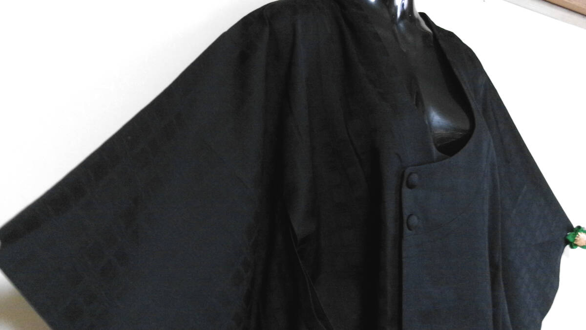 - 145 黒色升目模様※千代田衿※正絹※袷※道行※長コート 丈117 裄63