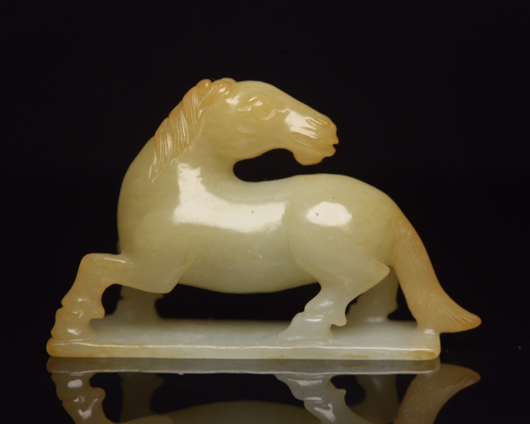 - 『館蔵珍品 和田玉製 細密彫 玉馬 置物 賞物』稀少珍蔵品 古賞物 貴重物品 収蔵品 中国古美術 時代物 古董品