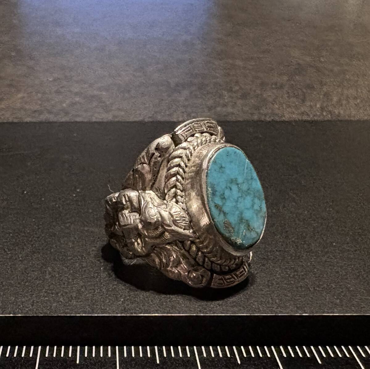 > デッドストック希少アンティーク銀シルバー製リング#12号ピンキー楕円形オーバル型ターコイズ石ビンテージ(silver925sterling