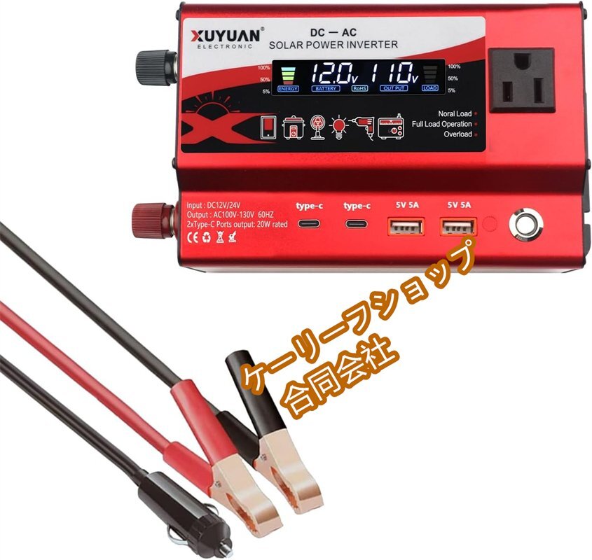 - 600W インバーター(瞬間1000W)12V/24V→100V 自動変換 静音/保護機能 防災・キャンプ用