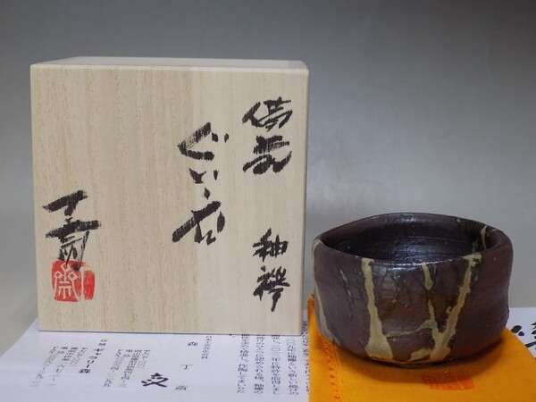 - ★mt35★備前焼 森丁斎 黒釉襷ぐい呑★森 風来 次男