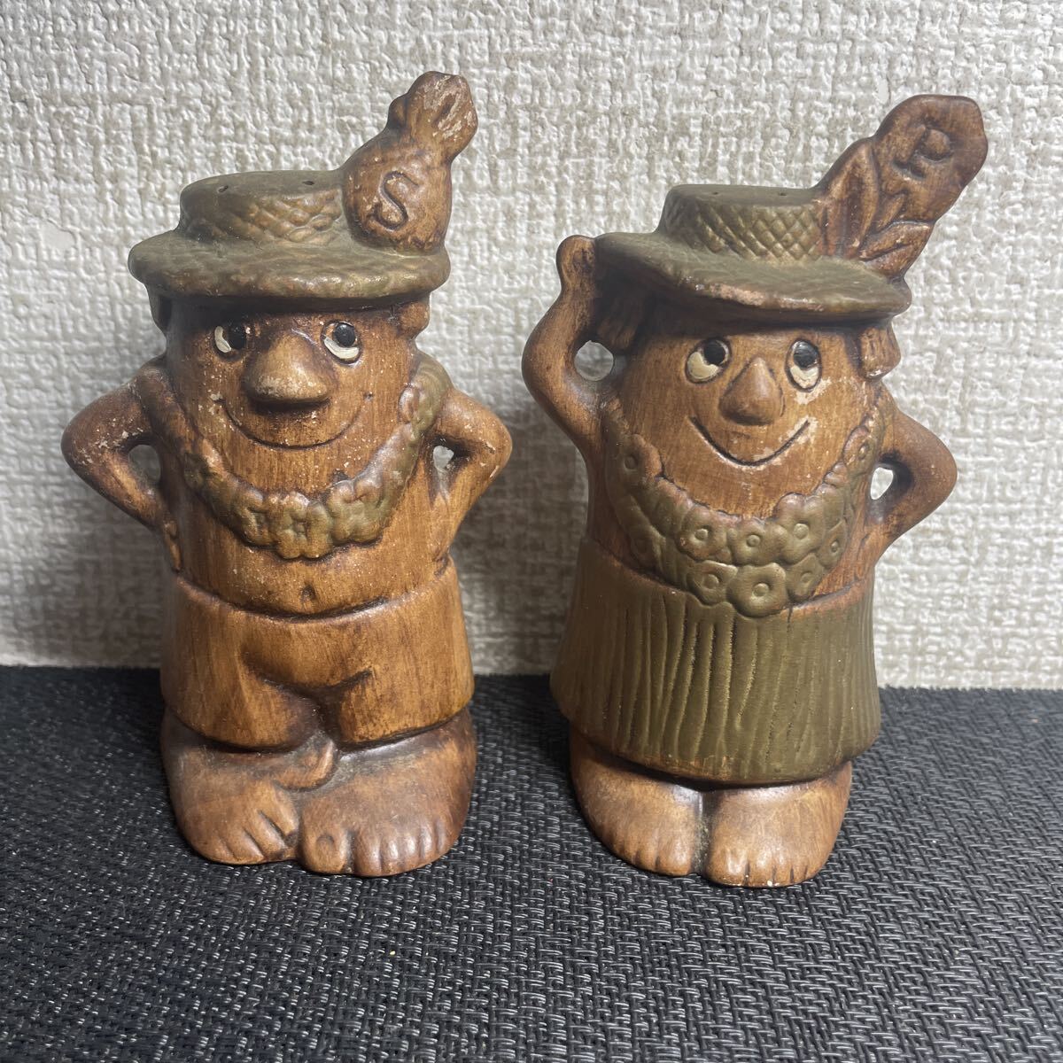 - ハワイ ビンテージ 塩胡椒入れ ソルト&ペッパー Treasure Craft 社 アメリカ製 ティキ ツーリスト 陶器 置物