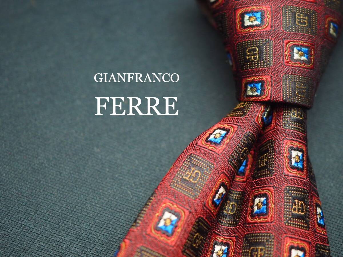 > 美品【GIANFRANCO FERRE ジャンフランコフェレ】 F1313 ロゴ ワイン系 SILK ブランド ネクタイ 古着 良品