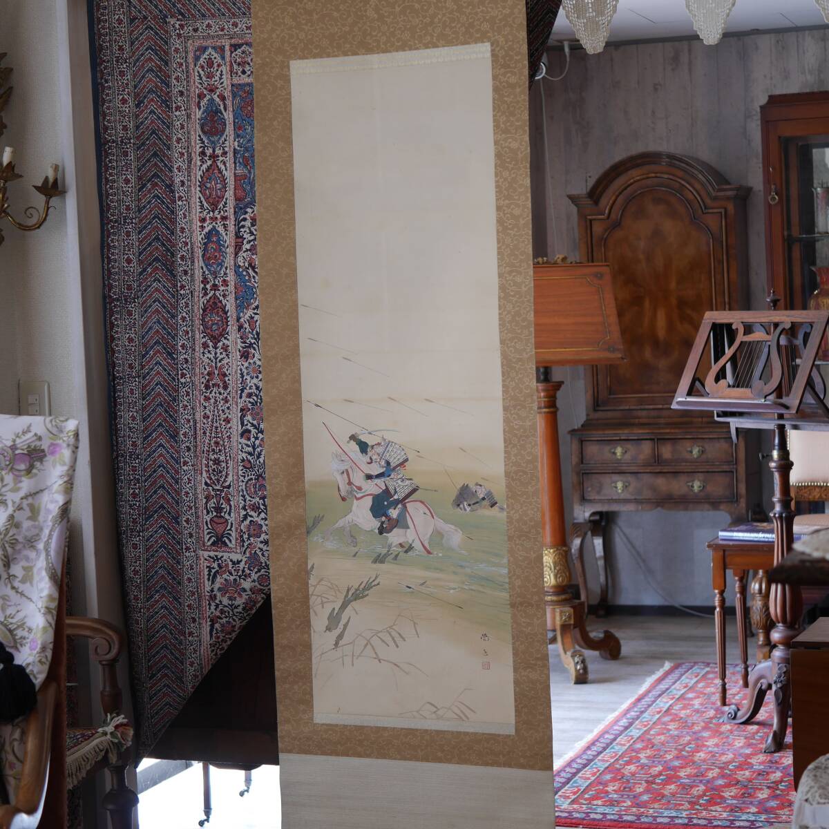 - 真作保証◆ 小山栄達 掛軸 日本画 共箱 絵画 JAPAN アート 武士 戦国 甲冑 鎧 馬 I