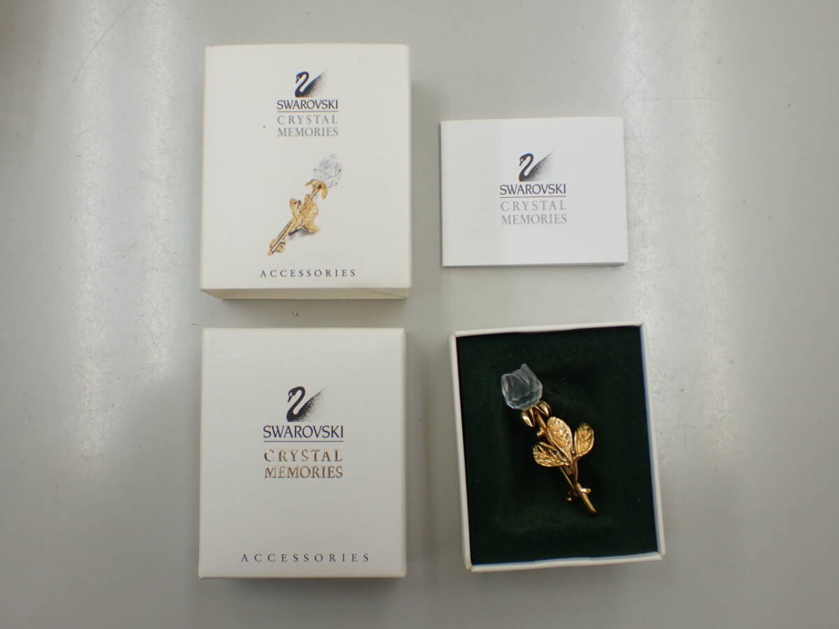 > 302-; スワロフスキー SWAROVSKI ブローチ チューリップ 花モチーフ 約42.0×16.0×厚み;10.0mm ★