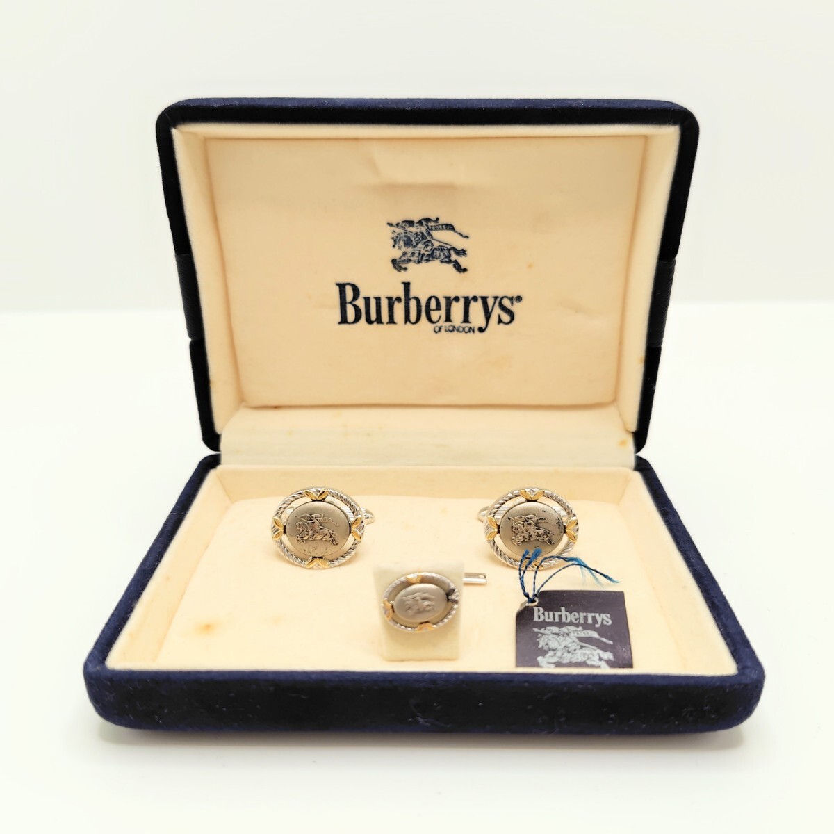 > Burberrys バーバリー シルバー ホースマーク 円形 タイピン ピンバッジ カフスボタン バーバリー セット バーバリーズ 箱あり