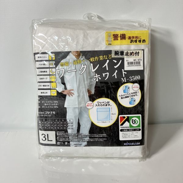 > 未使用 コヤナギ ワークレイン ホワイト M-3500 3L レインスーツ レインコート 上下 作業用 カッパ 雨具 腕章止め ワークマン HH-60
