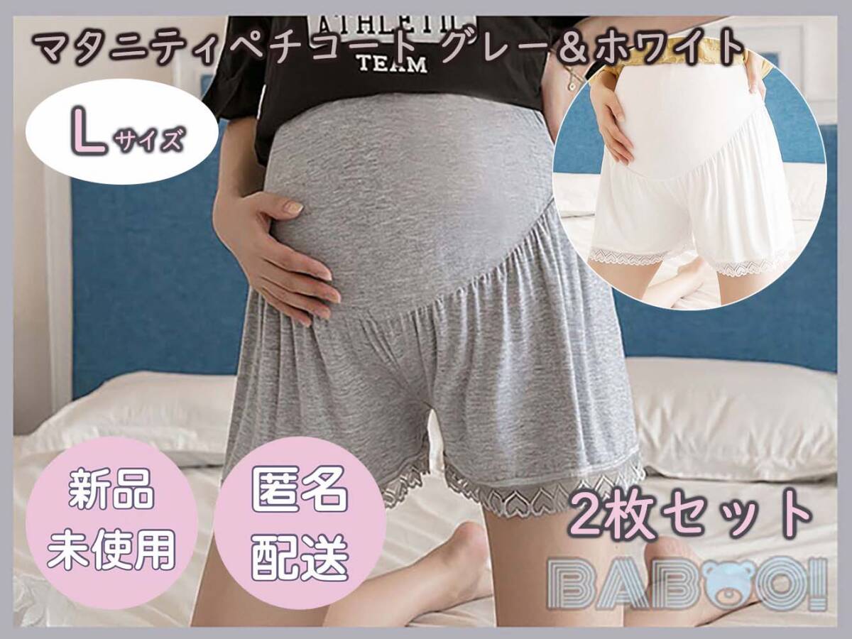 - マタニティ ペチコート レギンスパンツ スパッツ ショート丈 韓国風 Lサイズ 2枚セット ホワイト×グレー 産前 産後 薄手 ウエストゴム