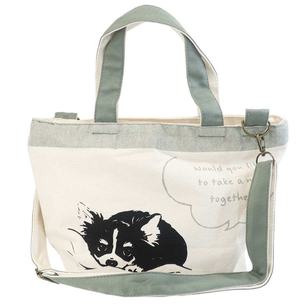 - 2wayバッグ プレゼント ショルダー付き お散歩 ミニトートバッグ チワワ WANだらけシリーズ いぬ グッズ 男の子 女の子 ギフ