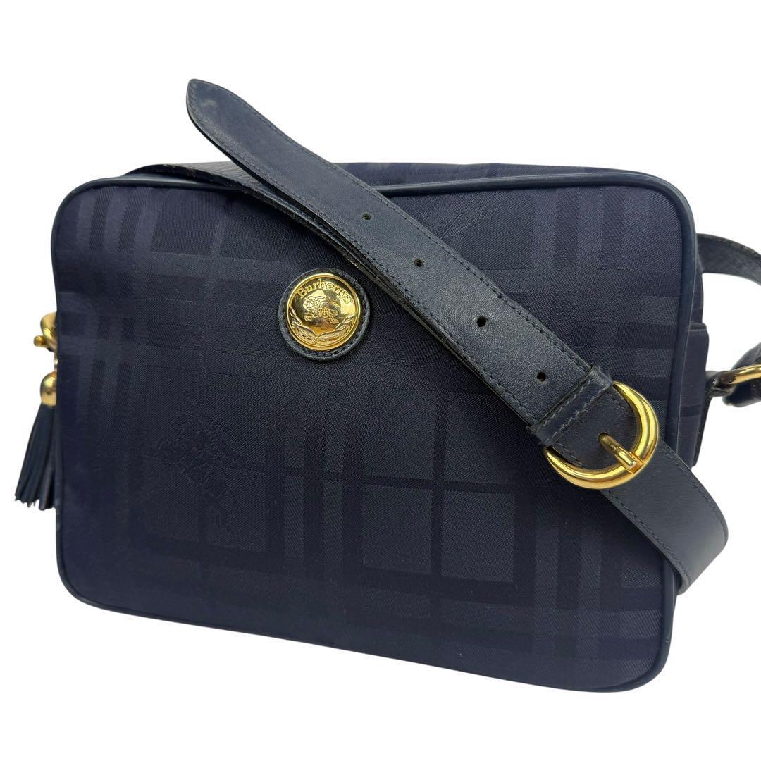 - 【美品】Burberrys バーバリーズ ヴィンテージ ショルダーバッグ カメラバッグ 斜めがけ シャドーホース ゴールドロゴ金具 ネイビー 紺色