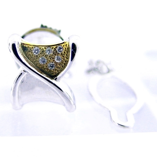 - K18YG/Pt900 ★タイピン ダイヤモンド0.03ct 4月誕生石 エックス文字のデザイン 【中古】 /s00060/10005380