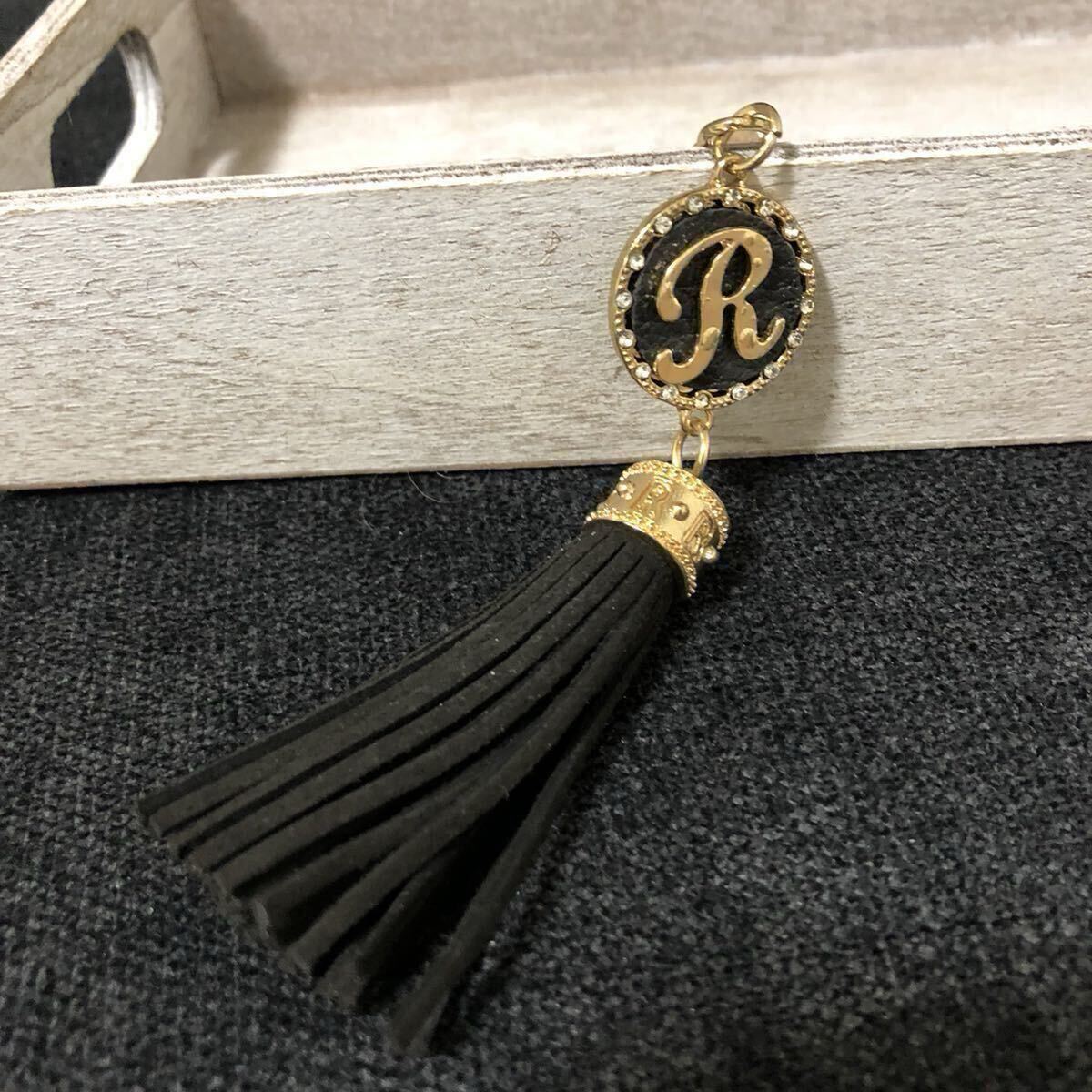 - 新品/バッグチャーム /キーホルダー バッグ レディース フリンジ イニシャル R ブラック
