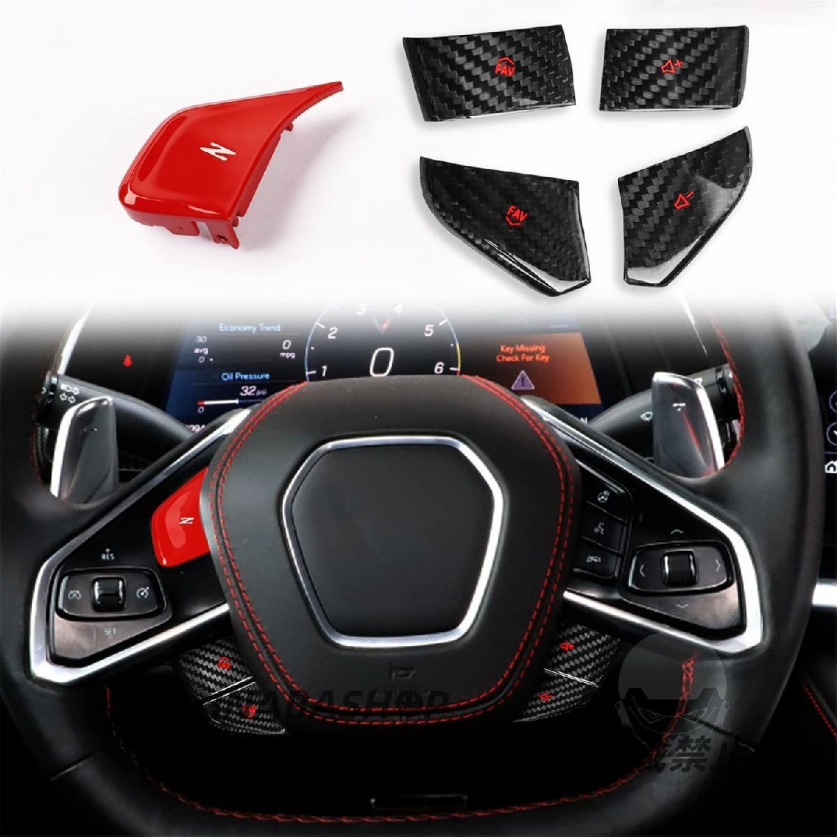 > カーボンファイバーABSステアリングホイールパネルフレームカバートリム シボレーコルベットC8 2020-2023
