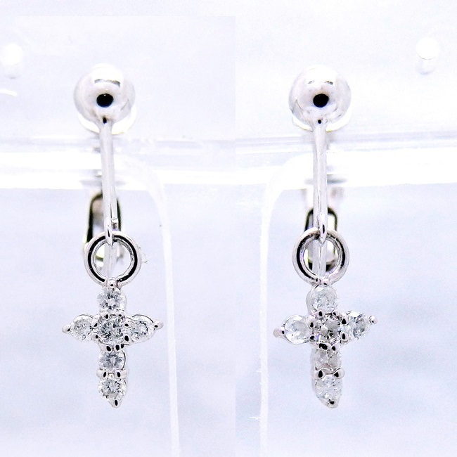 - K14WG★イヤリング ◇ダイヤモンド0.15ct/0.15ct 十字架 クロス 【中古・新品仕上げ済み】 /29292/1001307/